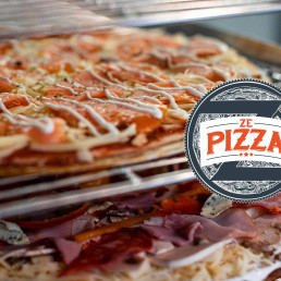 Sauce tomate, emmental, mozzarella, pommes de terre, lardons, raclette, beurre maître d’hôtel. Allergènes : Trace gluten, d'œuf, lait, fruit à coques, céléri, moutarde, graine sésame, poisson, anhydride sulfureux et sulfites.
